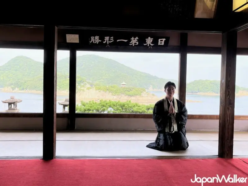 來到鞆之浦,絕對不能錯過的就是擁有「日東第一形勝」美稱的「對潮樓」!建於1690年的對潮樓其實是福禪寺本殿旁的迎賓樓,過往用以接待朝鮮通信使者,且能毫不保留眺望壯麗的瀨戶內海美景、仙醉島與弁天島,因此才獲得這般美譽,目前也成為日本指定的歷史遺跡。來到對潮樓除了從高處賞景、放鬆心靈之外,離去前也別忘了在木窗前與背後的絕美海景一起合影喔。