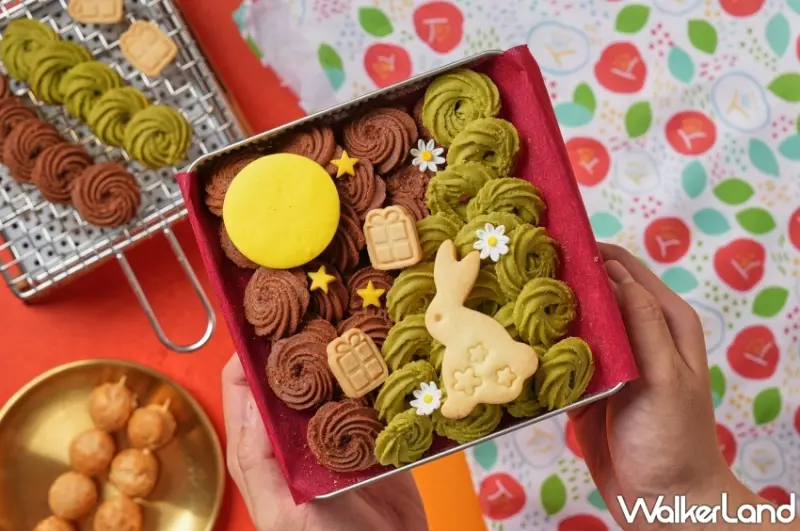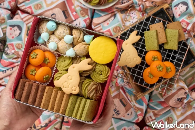 內容物:檸檬滿月、鹹蛋黃柿子、核桃雪球餅乾、青抹茶杏仁沙布列、黑糖沙布列、彈珠汽水馬林糖、巧克力沙布列、抹茶曲奇、培茶曲奇、兔子造型沙布列