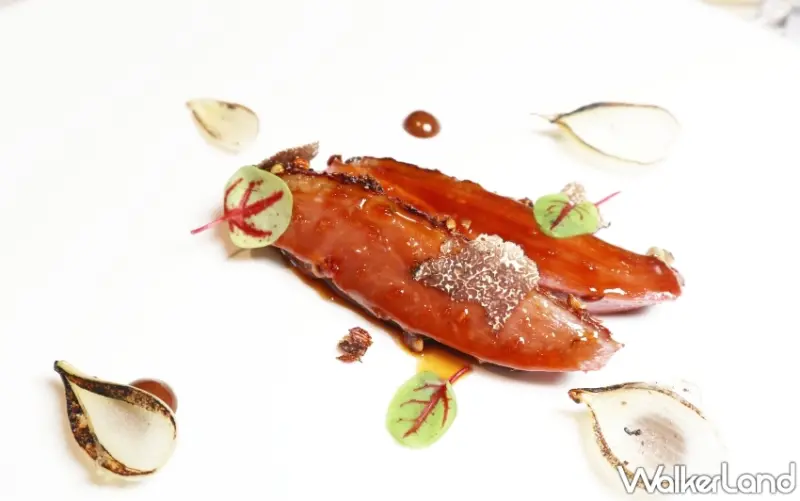 此外,「岩浪 vs 大摩亞歷山大三世」主廚以環境永續的思維理念,取魚皮及其嫩滑部分,輕柔覆以雪白泡沫之上,發揮巧思激盪出食材的絕佳風采。蓬鬆輕盈化於舌尖,宛如海邊擊打岩石後所迸發的晶瑩浪花,恣享徜徉於暖日微風中的悠然愜意。搭配大摩亞歷山大三世,世界唯一六桶熟成,杏仁、柑橘、莓果與花香的豐富層次。
