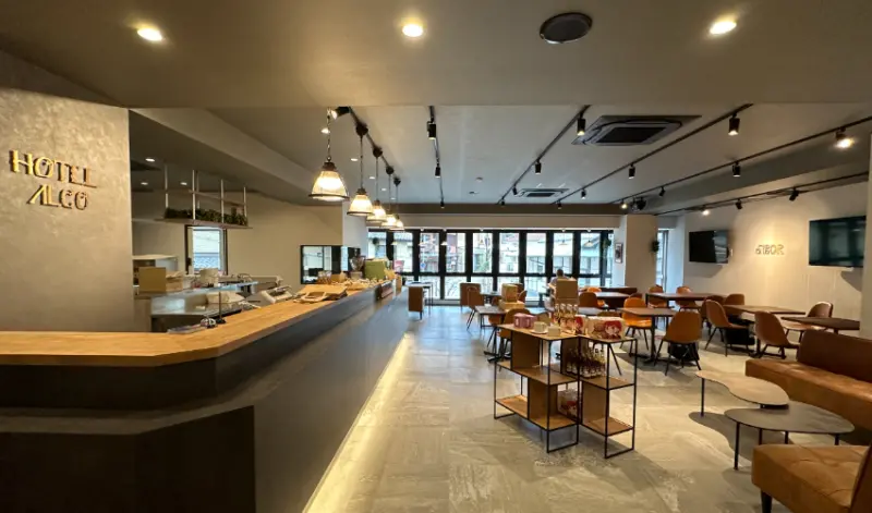 在建築物的一樓大廳是有馬玩具博物館的接待櫃台,櫃台旁陳列了各式玩具的ALIMALI博物館附設商店也進行過翻新工程。HOTEL ALGO的的櫃台則位於二樓,與提供漢堡和三明治的餐廳SABOR相連。SABOR餐廳以稀有品牌牛「但馬玄(たじまぐろ)」為食材,提供手製漢堡。除此之外,還有手工可樂「SABOR COLA」和自製檸檬水等豐富的飲料。餐廳同步提供晚餐套餐(8,800日幣),晚餐以神戶牛牛排為主菜。早上則有西式早餐套餐(2,200日幣)。![]()