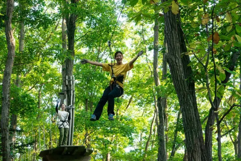 位於札幌市和新千歲機場之間的「Forest Adventure Eniwa」,主打高度10公尺、最長達到200公尺的滑索冒險課程,從札幌市中心開車約40分鐘,也可以從JR千歲線的島松站前往,就能在此享受北海道自然的同時,體驗快感急速之旅。在9月下旬到10月下旬正值豐富多彩的時期,挑在此時來遊玩,就能欣賞到絕美的空中紅葉美景。