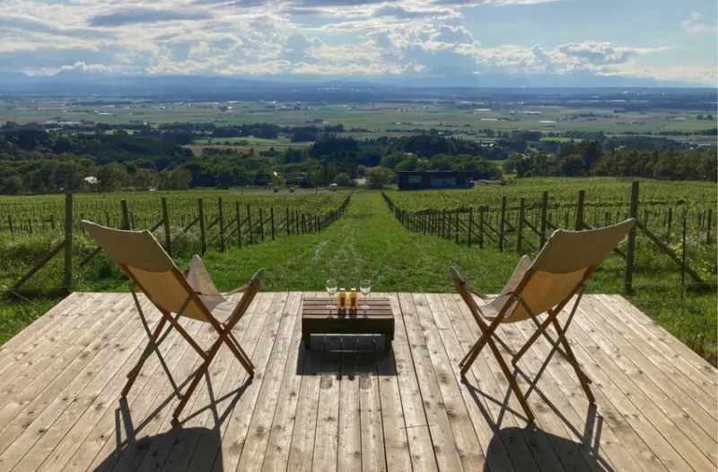 馬追蒸餾所位於長沼町的馬緒井丘上,距離新千歲機場車程30分鐘,距離札幌50分鐘車程,是一個完全預約制的私人露台。在露台上,您可以選擇品味葡萄酒或蘋果汁等飲品,並一邊欣賞北海道大自然的廣闊美景,悠閒地度過寧靜的時光。
