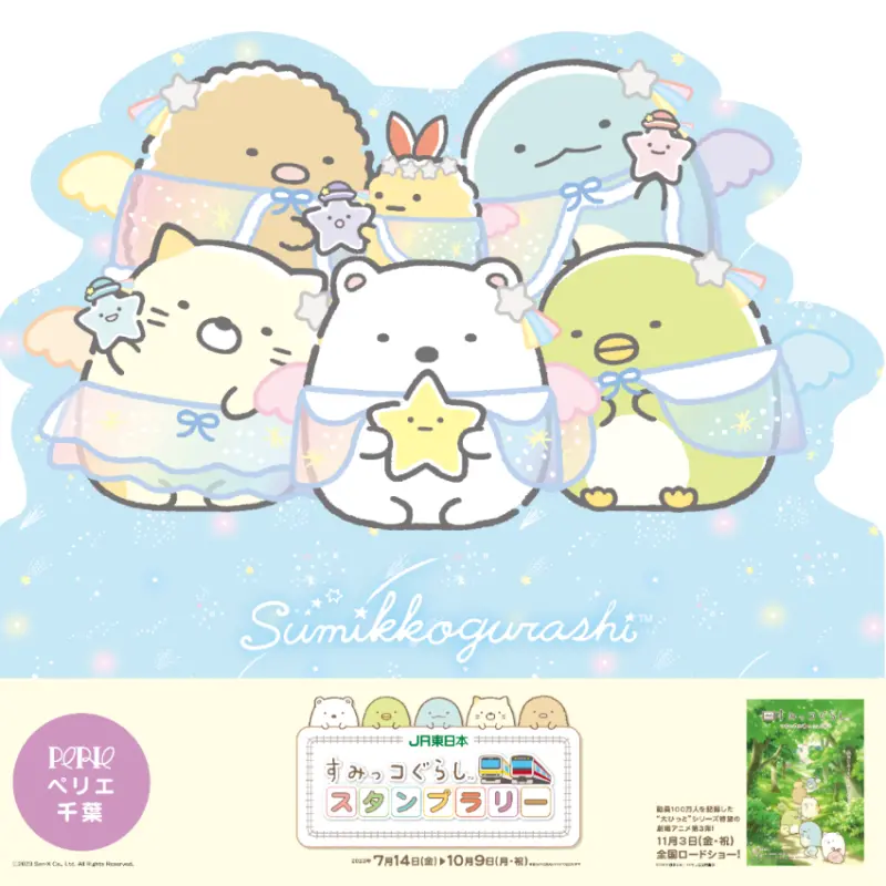 本次JR東日本及角落小夥伴共同企劃的蓋章集點活動於2023年7月14日~10月9日舉行,只要在活動期間搭乘總武線和京葉線,並集滿總武線津田沼站、稻毛站、千葉站3站,以及京葉線的新浦安站、新習志野站、幕張豐砂站、海濱幕張站4站的印章,即可獲得角落小夥伴的獨家資料夾&貼紙組,數量有限,贈完為止。![]()