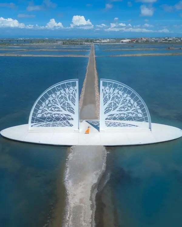 台南獨有的扇形鹽田近年因為空拍興起,重新引起一陣觀光熱潮,今年更是新建大型裝置藝術「生命之樹」,搭配上廣闊海天、綿延的海上步道,形成夢幻度爆表的海上地景。純白色的鏤空樹狀造型,讓你不管是晴朗的白日,還是在夕陽餘暉時前往,都能拍出獨具樣貌的美景。