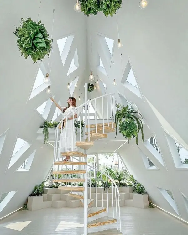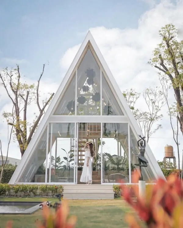 近期因為夢幻的外型而意外爆紅的「御飯糰玻璃屋」,不僅有著純白的三角玻璃屋、網美風旋轉階梯,屋內也懸掛了多株綠植,以及供人打卡的網美擺拍佈置,此外,玻璃屋外更有一大面草皮地與親水迴廊,集許多美拍元素為一身,從今年夏天爆紅後,便吸引台南網美們前往朝聖,是台南必拍的最新網美打卡點。