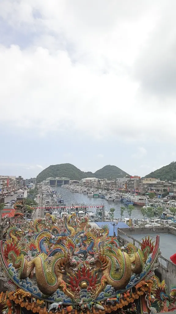 從三樓金媽祖看下去的景致,除了熱鬧滾滾的南方澳港外,還有一座筆架山,所以當地居民常說南方澳出品文官,就是來自於這座筆架山的保佑。