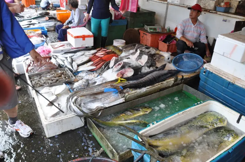 每一箱都是新鮮活跳跳,真的是活跳跳的海產,魚類、螃蟹、蝦子、還有好多攤都有烏賊或透抽。