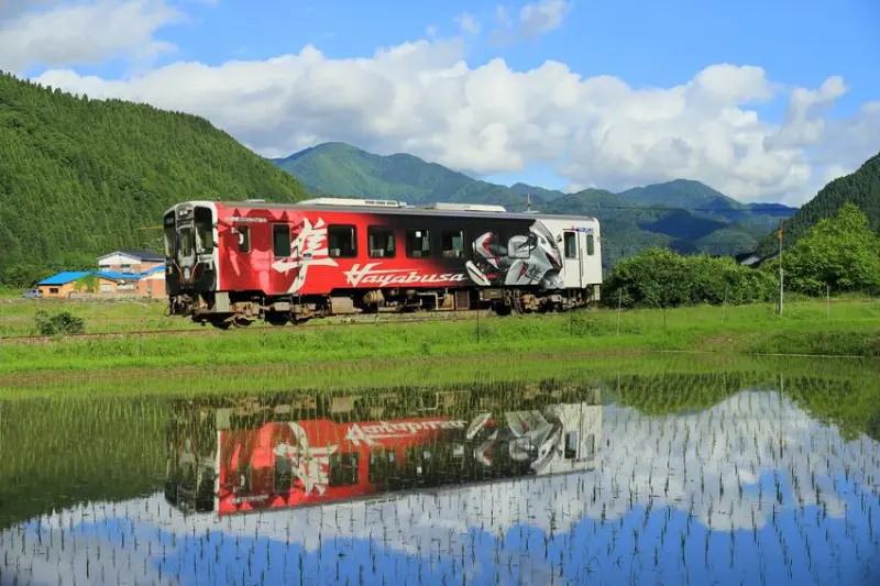 若櫻鐵道行駛於JR郡家站與若櫻站之間,區間共經過9個車站,全長19.2公里鐵路線上的23處設施榮獲國家有形文化財之認可,至今保持著當時的歷史風貌。象徵著若櫻町的復古懷舊及朝氣可愛,「昭和號」、「八頭號」、「若櫻號」這3台観光列車由日本知名的工業設計師「水戶岡銳治」所打造,如果想要捕捉到完美的列車身影,建議來到位於終點站的若櫻站,就會有很高機會能捕捉到這些停靠在月台的列車身影。