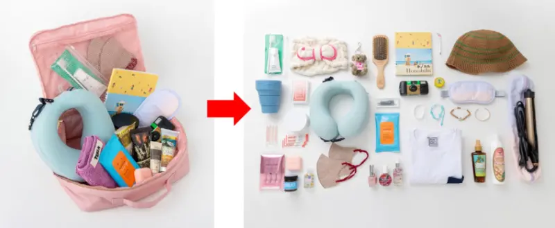 可以當作長程飛機的登機化妝包,裡面可以裝下頸枕、環保水包、棉花棒、護膚產品、口罩、棉質薄T恤、帽子、眼罩、梳子、立可拍、洗面用頭帶等。![]()