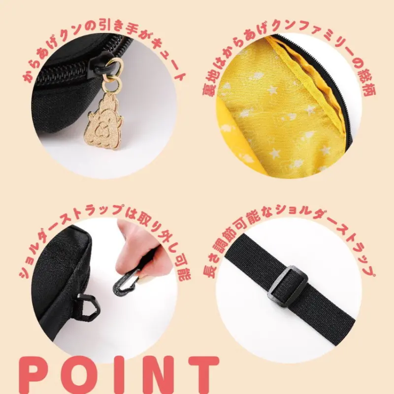 首次與日本背包品牌「CIAOPANIC TYPY」聯名合作,共同推出隨行包。以百搭的黑色為包包底色,上頭在繡上「炸雞君」的小刺繡,拉鍊及內襯的花紋也充滿巧思,皆以炸雞君為主題,更添可愛!此外,還配有可拆卸的肩帶,及可放置小物品的內袋和易於取放物品的開放口袋,機能性十足,外出旅遊背上它就對了!![]()