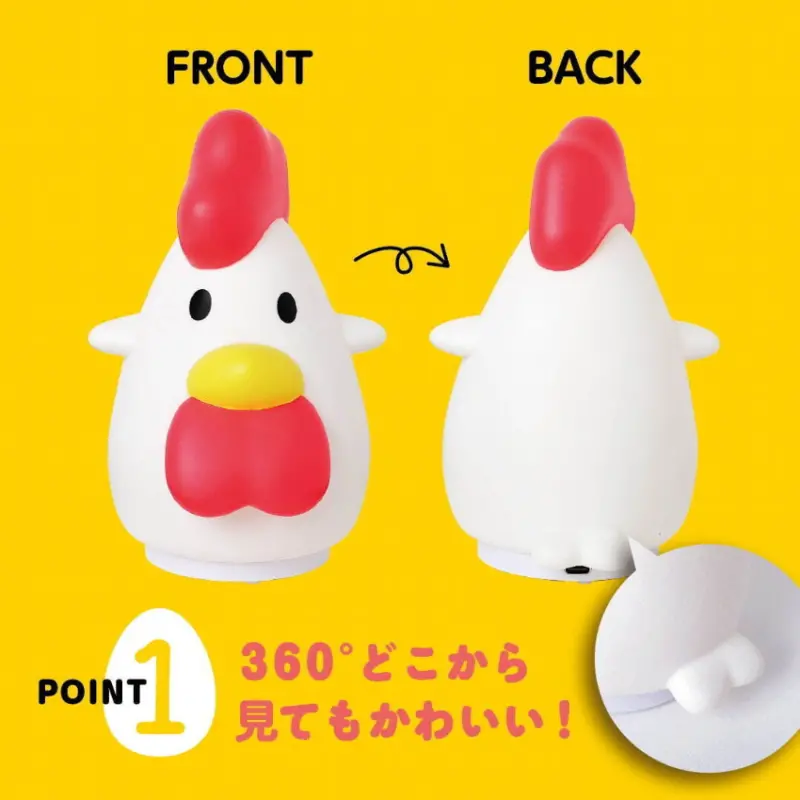 以炸雞君的LOGO為元素的小夜燈,約掌心大小,小巧精緻,設有約1小時的自動關燈計時器功能,可作為床邊或是室內裝飾使用。電力來源共有2種,可以直接使用電池或USB通電等不同供電方式,不僅適合在日常生活中使用,在災害時也能即時派上用場。快將這款實用又療癒的小夜燈打包回家吧!![]()