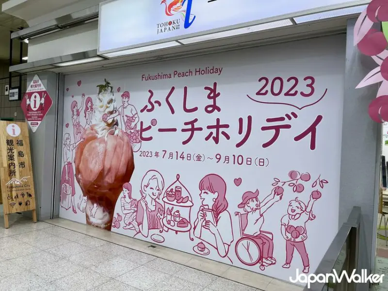 水蜜桃對於福島來說,可說是相當具代表性且自豪的農產品,甚至被稱作是福島的夏日風物詩之一,因此從今年7月起一路到9月10日,福島市舉辦了一場相當盛大的水蜜桃假期活動「Fukushima Peach Holiday(ふくしまピーチホリデイ)」,約2個月的期間與福島市共68間甜點店、餐廳、果園、旅宿業者合作,推出各種原創獨特的水蜜桃甜點、水蜜桃料理,甚至連飯店住宿都有滿滿的水蜜桃等著大家來體驗嚐鮮,像是本文介紹的「吉川屋」也參與其中,就是要讓來自世界各地的旅客,沉浸在福島市的水蜜桃幸福氛圍裡。