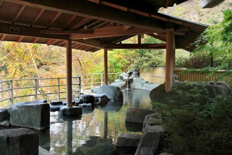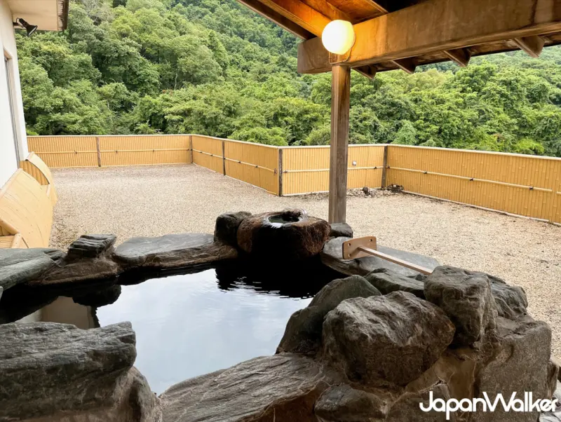 說到吉川屋最引以為傲的館內設施,絕對是能夠眺望大自然景觀的「自家湧泉溫泉」,不管是大浴池(弁天之湯、籐太之湯)或是露天溫泉(羚羊之湯、猴浴之湯),其水質皆為弱鹼性的單純溫泉,對肌膚相當溫和、洗起來更顯溫潤滑順,就算是孩童與長輩們都能安心泡湯。