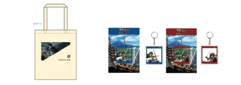 此外,為了紀念本次的合作,當然少不了豐富的獨特原創周邊。以《進擊的巨人》動畫為元素推出T恤、磁鐵杯墊、手提包及壓克力鑰匙圈等商品,只在遊樂園內的SHOP FUJIYAMA才能買到!