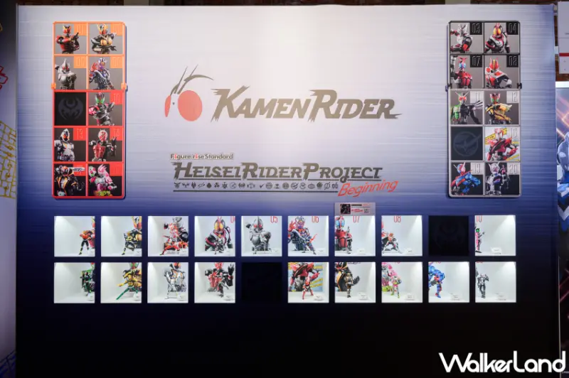 還有本次重頭戲日本平成年間登場的20位假面騎士,萬代南夢宮玩具模型事業部將橫跨平成年間近20位主角假面騎士,以組裝模型面貌呈現的計畫於現場獨家展出,憑藉「組裝模型」特有的組裝過程與機構來表現「變身」以感受到影集中的氣氛,並透過零件與特殊塗裝質感表現,讓組裝模型更為真實呈現。