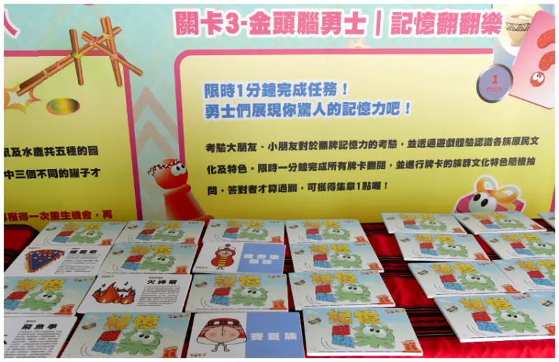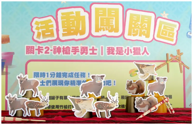 「原客市集」也特別為小朋友準備可愛有趣的小遊戲,像是丟客家沙包機智問答,竹筷子槍射擊的小小勇士,或是記憶翻翻樂的金頭腦勇士,只要完成任務,就能拿到神秘小禮物-16族圖騰餅乾乙份,讓小朋友在遊戲中體驗及認識文化知識。![]()