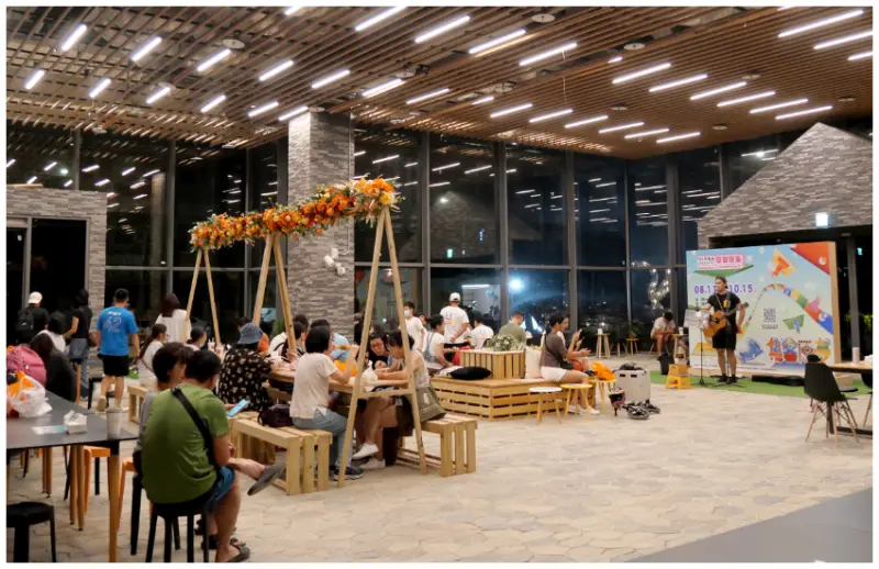 因為目前正值盛暑,「原客市集」也可貼心地規劃室內用餐區,可以吹吹冷氣歇歇腳,舒服地品嘗攤位美食,小舞台區也不定時安排街頭藝人的演出。![]()