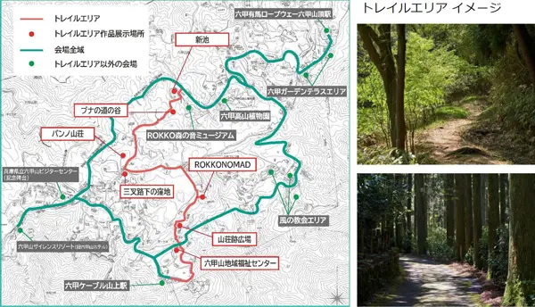 除了SIKI花園,在連結各大會場的山路上也將設置許多作品,「藝術散步小徑(トレイルルート)」便為其一,遊客可一邊沈浸於六甲山自然美景中,一邊欣賞藝術作品,享盡與自然為伍。