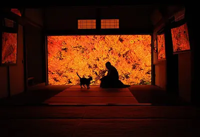 腳步稍往東移動至但東地區,可感受與城崎溫泉及出石城下町不同的農村風情,此地更有著名的賞紅葉聖地「安國寺」。安國寺有著一大片日本原生植物的「日本吊鐘花」,吊鐘花於秋天時轉為鮮豔的橘色與赤紅色,有別於其他賞楓景點,吊鐘花的色彩層次豐富而鮮豔,彷彿火焰般的鮮紅色為其最大的特色,也是城崎溫泉一帶不可錯過的知名景點。坐在禪寺本堂邊欣賞壯麗景色的同時,人也一同融入於景色內形成一幅畫,本堂拉門的邊框也彷彿畫框一般,為非常受觀光客歡迎的拍照景點。![]()
