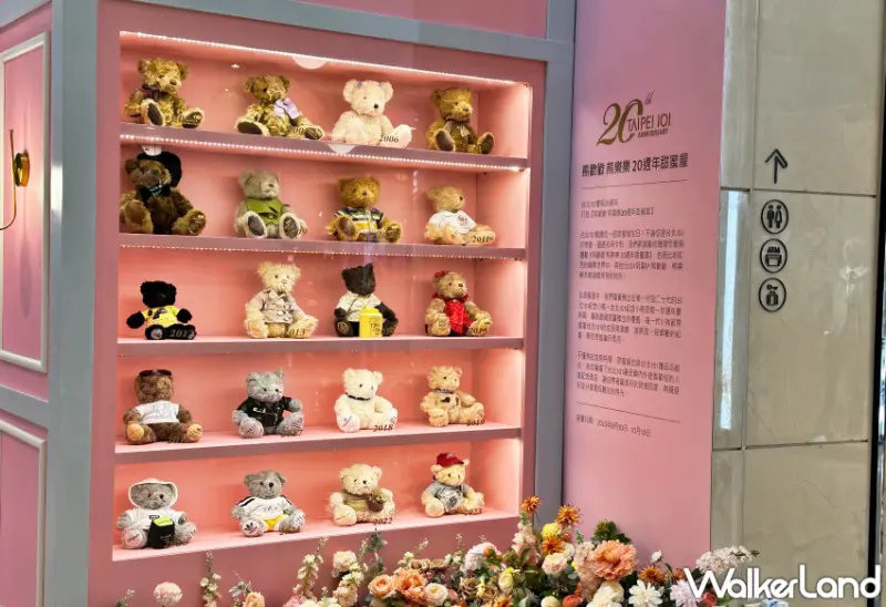其中,台北101特別在1樓信義長廊打造「熊歡歡 熊樂樂 20週年甜蜜屋」,從第1代到20代台北101紀念小熊齊聚一堂。台北101紀念小熊,是每一年週年慶時期,僅為會員限量推出的珍藏品,每一代小熊都見證著台北101的成長與演變,這將是一段華麗且甜蜜的紀實,引領賓客穿越歲月長河。