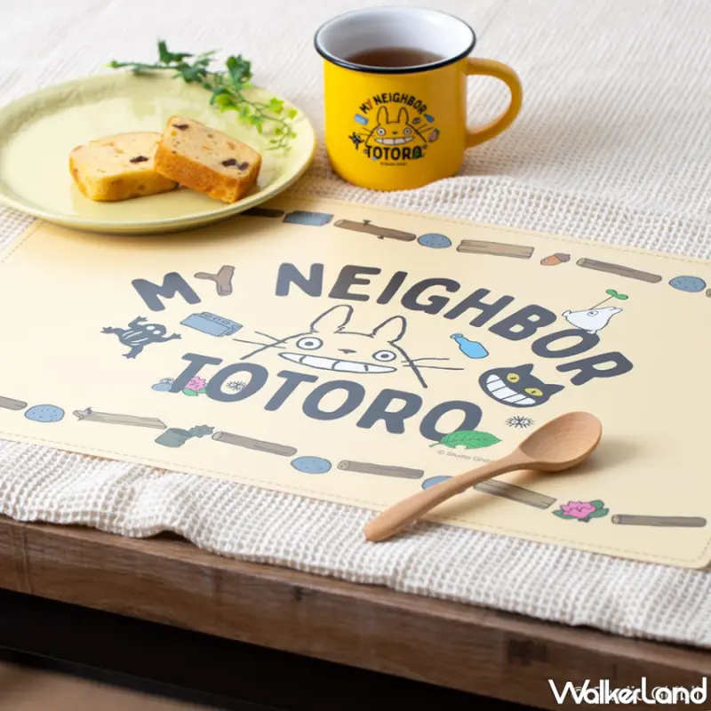 更有成對的「餐墊 龍貓的微笑 黃色」可搭配實用,相對需經常清洗的布餐墊,防潑水的塑膠材質厚而輕,使用收納、清潔都方便。富有一體感的馬克杯及餐墊,讓餐桌上充滿更多喜悅而更加熱鬧活潑。