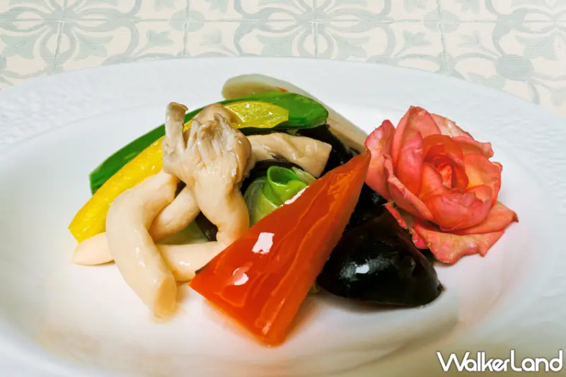 其中,在前菜方面「日月潭紅茶雞」特別選用以日月潭紅玉紅茶飼養的紅玉雞,長年在得天獨厚環境下生長,肉質特別Q彈滑嫩,襯上青辣椒完美融合獨特口感新滋味。「雲林烏魚子」以雲林肥美甘甜的新鮮烏魚子,外層裹上蛋皮搭配白蘿蔔等,更顯清爽細膩口感。「東石椒鹽蚵」來自嘉義東石飽滿鮮甜蚵仔,抹上椒鹽炸得酥脆,底部襯上油條酥脆爽口。「基隆吉古拉」以基隆傳統小吃為發想,選用新鮮魚板淋上秘製干邑醬,醬汁以酒釀調味香氣濃郁,味道高級順口,令人食指大動,傳統小吃化身為精緻佳餚。![]()