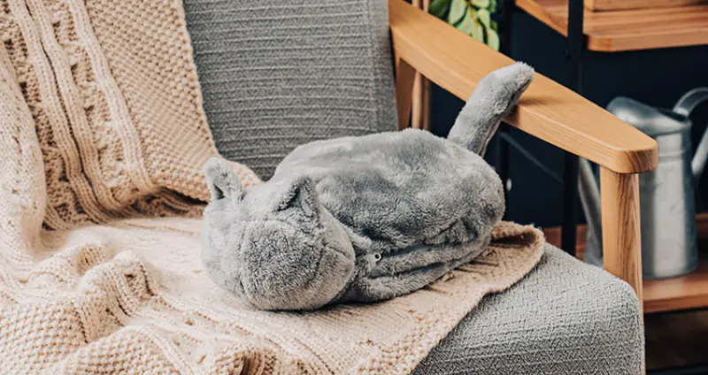 只需將蓄熱用的變壓器連接到本體的插孔上,約15分鐘就能蓄熱完成。蓄熱完成後,將暖水袋放入貓咪毛皮內即可。![]()