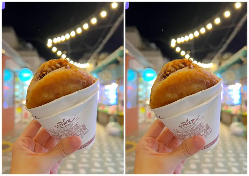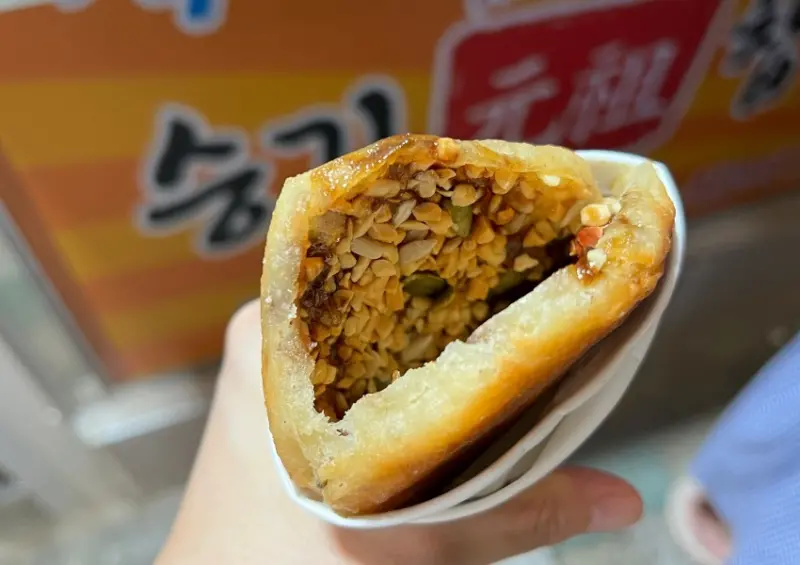 口味部分有黑糖、堅果、黑糖堅果和起司等選擇,其中最推薦的就是「黑糖堅果糖餅」,將熱騰騰的糖餅剪開後塞入滿滿的綜合堅果,建議要趁熱趕快吃,冷掉後。而海雲台傳統市場沿路還有各式各樣小吃,包括現殺活盲鰻也是釜山在地特色,各家都會在店門口現宰活忙鰻,膽小害怕血腥者請先做好心理準備。