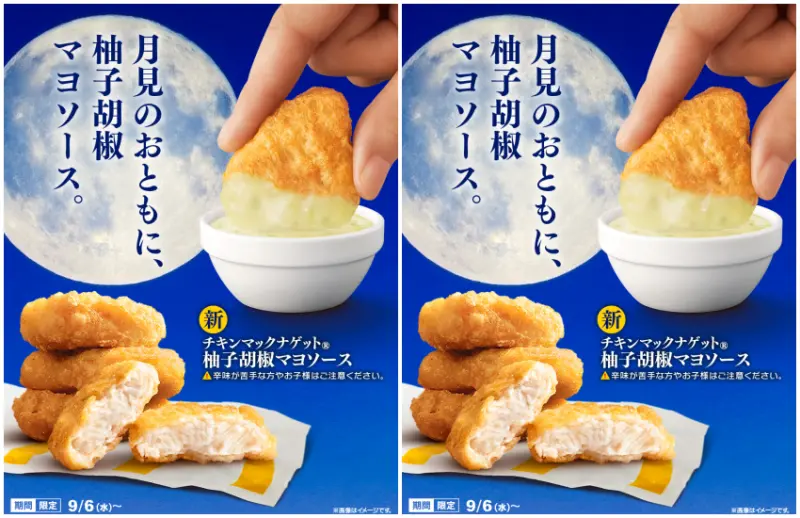 麥克雞塊也隨著這次月見家族餐點的登場,特別推出了秋季限定的全新「柚子胡椒美乃滋」沾醬,清爽的柚子夾帶微微辛辣的胡椒味,搭配醇厚的美乃滋醬,沾著麥克雞塊吃,讓你越吃越唰嘴。