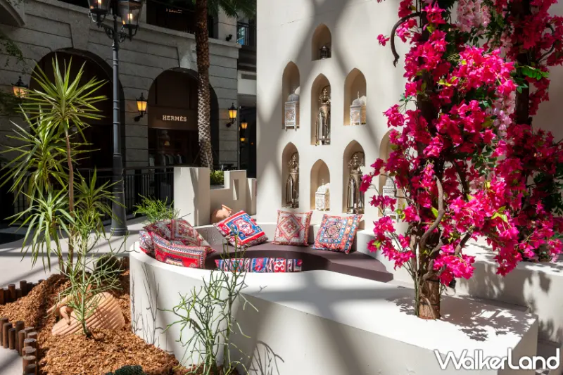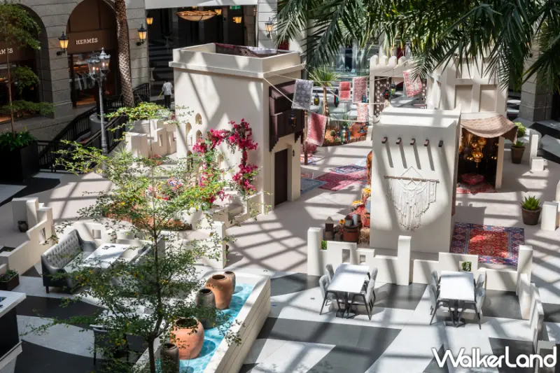 同時,在古宅後院,特別規劃了露天咖啡座位區,沈浸在這座古城裡的多元文化和繽紛色彩,一解旅人探險時的乾渴。這裡有傳統市集,也有精品名店,象徵從傳統走向現代,營造出另一種視覺衝擊,對於大漠的印象不再僅限於天方夜譚,歡迎親自入境,沉浸屬於旅人的一千零一夜。