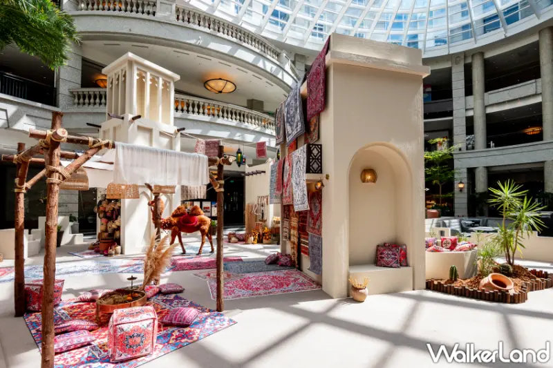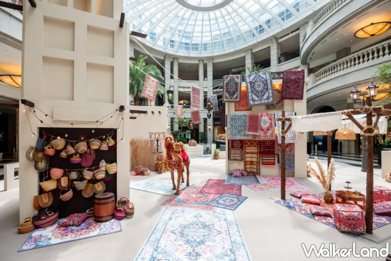 十四周年BELLAVITA將商場中庭打造成充滿異域特色的奇幻古城,讓人一秒進入人聲鼎沸的市集,映入眼簾的是各式各樣的店鋪,不論是細膩的手工藝品、魔毯和燈飾,或是各種異國香料及蔬果,形成了一個熱鬧的文化交匯點。
