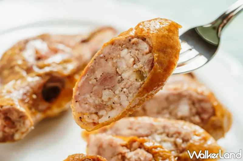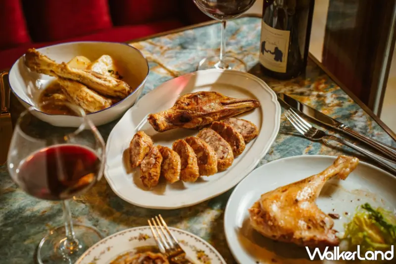 此外,還有以鴨鵝製作成菜餚,是法國西南部佩里哥(Périgord)常見的料理手法,其中「鵝頸拐杖手工腸」 是法料中工序繁複又耗時的一道菜式,同時從鵝胸到鵝腿皆可入菜,帶頭鵝頸也可全食,實踐「0剩食」理念。