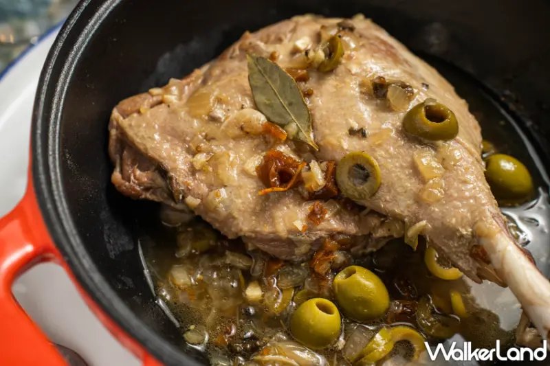 而經典法餐之中,來自南法鄉村老奶奶的拿手菜「橄欖燉鵝腿 」是Gras 經典鄉村料理之一。使用肥美的大鵝腿,經油封低溫慢煮,保有肉質濕潤度與香氣。集結普羅旺斯的特色食材,取風乾番茄的酸與甜,配合醃漬黑橄欖與綠橄欖,帶來不同層次的濃郁風味,最後再以濃郁的鵝肉高湯中長時間燉煮,讓鵝肉與橄欖的酸與甜與熟軟的鵝腿肉巧妙融合,油脂豐富卻不感膩口,是極具代表性的地中海的傳統菜餚。