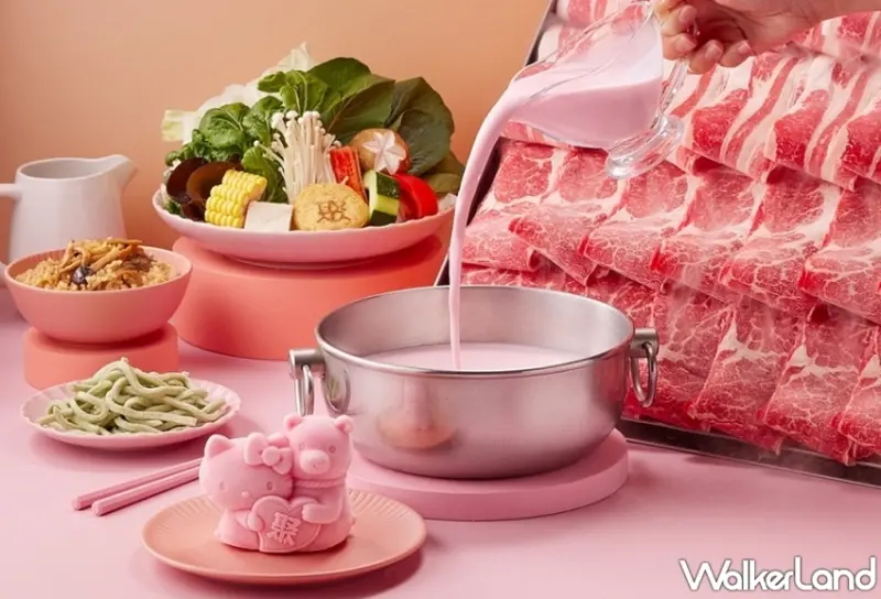 人氣火鍋「聚 日式鍋物」首度與台灣三麗鷗聯手,推出粉紅夢幻鍋物要打造最萌吃鍋體驗。9/15-12/31內用消費任一主餐加價99元,即能享用期間限定聚X Hello Kitty聚萌粉紅牛奶鍋。牛奶鍋粉紅湯底,由天然甜菜根特製而成,另外設計聚寶熊與Hello Kitty造型湯塊,甜蜜擁抱相聚入鍋,模樣可愛又療癒,搭配粉紅花瓣魚板烹煮,為鍋物堆疊甜美視覺感,好吃又好拍。