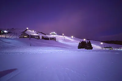 位於城崎溫泉以南的神鍋高原,高原地形讓這邊不僅可從事豐富的戶外活動,來到冬季,得天獨厚的地理條件,讓厚雪層層堆積於高原上,為關西知名的滑雪勝地。神鍋高原主要有三處滑雪場,一片白雪皚皚的高原中,沿途的民宿與滑雪場的明明燈火,微光於冬季寂靜的深夜中更彷彿星光閃爍般,形成唯美動人的雪景。![]()