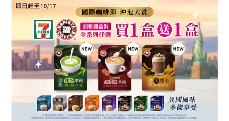 久違的連假即將來臨!為了歡慶 10/1 國際咖啡節,西雅圖強檔推出「買一送一」活動,邀請全台咖啡愛好者一同狂歡!即日起至 10/17 止,只要到全台 7-11 購買西雅圖全系列盒裝商品,即享買一送一優惠。![]()