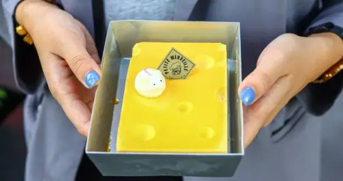 初鹿牧場以自家高品質鮮乳作為原料,打造全新甜品「初鹿牧場融心乳酪」,表層微微金黃色,外型如同縮小版的巴斯克起司蛋糕,乳酪蛋糕外層是綿密奶香的乳酪,中間夾層則是奶霜內餡,讓人一次就能品嚐到雙重奶香風味,且每顆熱量不到180大卡,讓人更無負擔吃起來。