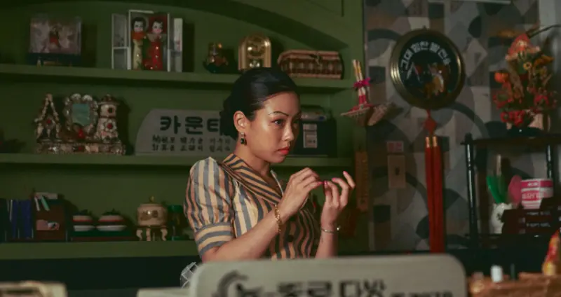 女主角「春子」一心追求成功賺大錢,她的慾望反映在服裝打扮上,頂著一頭波浪大捲髮、高腰喇叭褲,打扮鮮豔到哪都是焦點。本片服裝導演翻閱各類1970年代的電影紀錄,構建出屬於《神鬼海底撈》的特色,女主角金憓秀更是樂在其中,「我對嬉皮風格很有興趣,所以收藏了很多1970年代的時尚與音樂劇資料。」片裡懷舊氛圍讓觀眾沈浸於70年代的感性。![]()