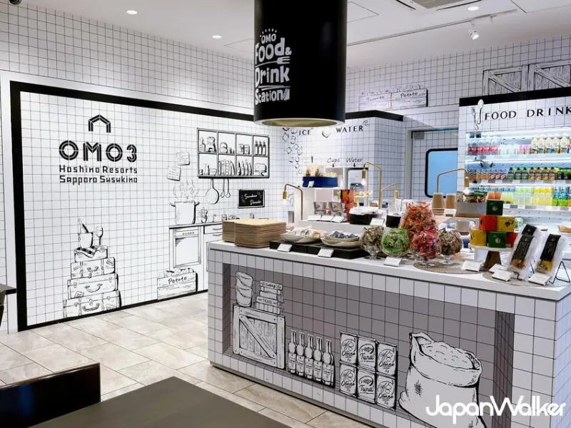「OMO3 札幌薄野 by 星野集團」較近似商務旅館的形式,因此館內未設有餐廳,但取而代之的是在一樓大廳設置了「Food & Drink Station」,從餅乾、霜淇淋、濃湯沖泡組、飲料、沙拉、鹹派等應有盡有,一日下來還會根據不同時段提供不同的品項,讓想要吃點輕食或小零食的旅客,隨時下樓都可以用實惠的價格買到美味的食物。![]()
