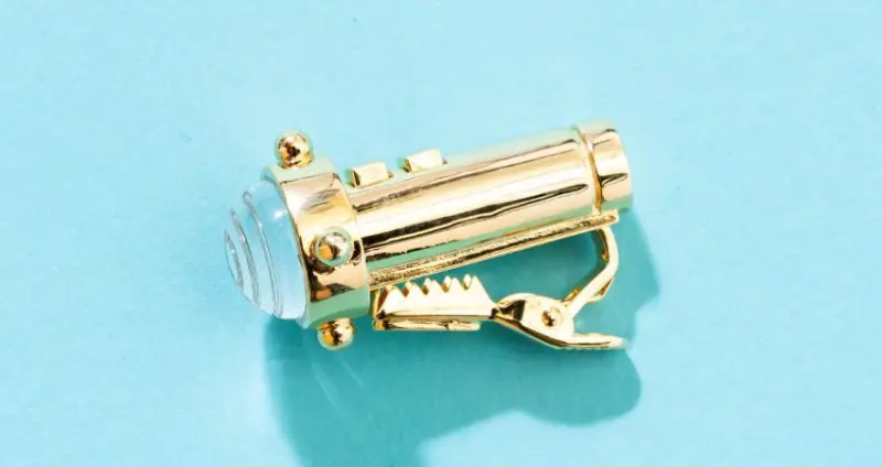 除了領帶外,還推出了許多小物件,讓人聯想到哆啦A夢百寶袋裡的法寶!如「縮小燈」造型領夾,做工精緻,還可以按下縮小燈上的開關,每一處細節都絲毫不馬虎。![]()