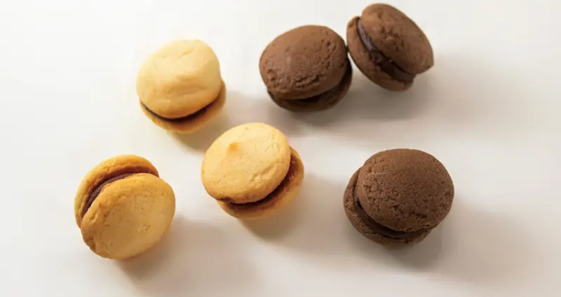 另外,還有一口大小的夾心餅乾「PEKO龍(ペコロン)」,將酥脆的餅乾夾上可可巧克力醬,共有原味及巧克力2款。餅乾包裝盒也以「PEKO醬」為獨家設計,相當適合作為伴手禮。