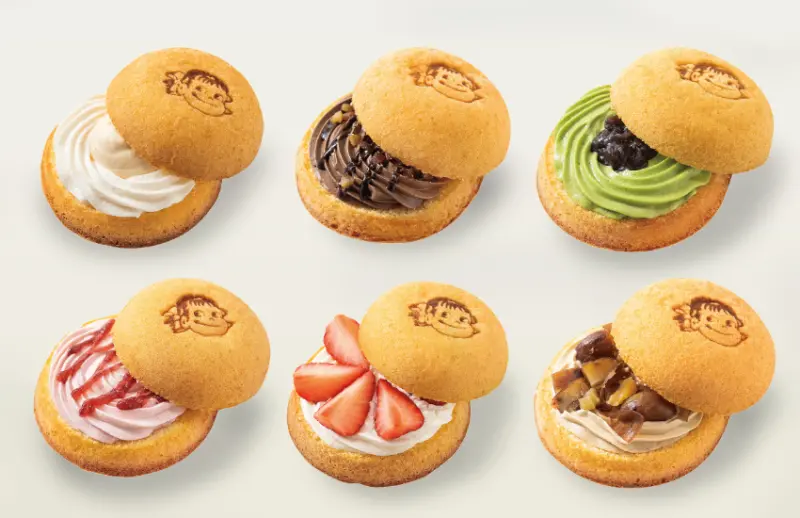 獨家限定的「PEKO的臉頰Premium」共有6款風味,如:經典風味的「牛奶&卡士達」,使用了奶油牛奶和輕盈的卡士達奶油,還有由最高級茶藝師池田研太精心挑選的鹿兒島抹茶奶油結合細緻紅豆的「池田抹茶&紅豆」風味,以及秋季限定的「栗子蛋糕」風味,擠上了栗子奶油,並以栗子點綴。