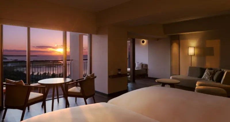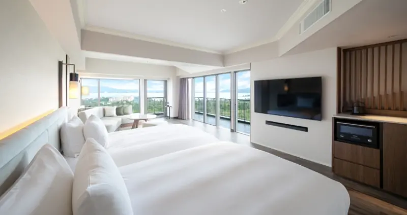 Club Corner房間面積約64.9㎡,最多可入住4名房客!由於飯店本身座落於面向海的丘陵上,位於周邊度假區的最高點,房客可以因此俯瞰東海。海景套房擁有寬敞的空間、舒適的客廳區域和開放的室內露台,房客光是躺在床上、坐在沙發上就能享受壯觀的全景。此外,所有客房還設有可感受海風的露天陽台,供房客感受舒適的徐徐海風。![]()