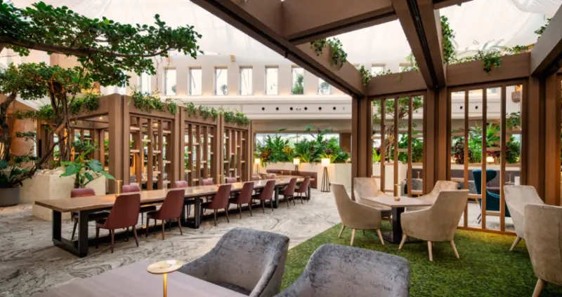 Club Lounge僅供Club房型和套房客人使用。空間內充滿綠色的植物,專屬的工作人員會在此為房客提供舒適的休憩時間。![]()