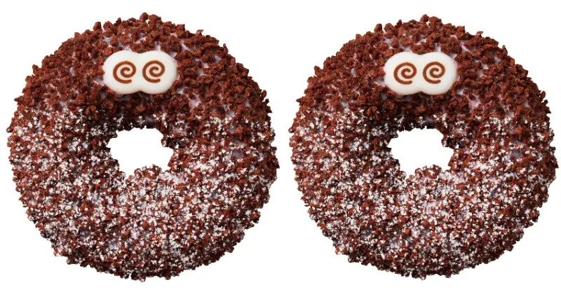 巧克力覆蓋Mister Donut的招牌波提甜甜圈,再以巧克力脆片、巧克力眼睛妝點。巧克力惡魔甜甜圈喜愛惡作劇,總是來城市裡捉弄別人。![]()