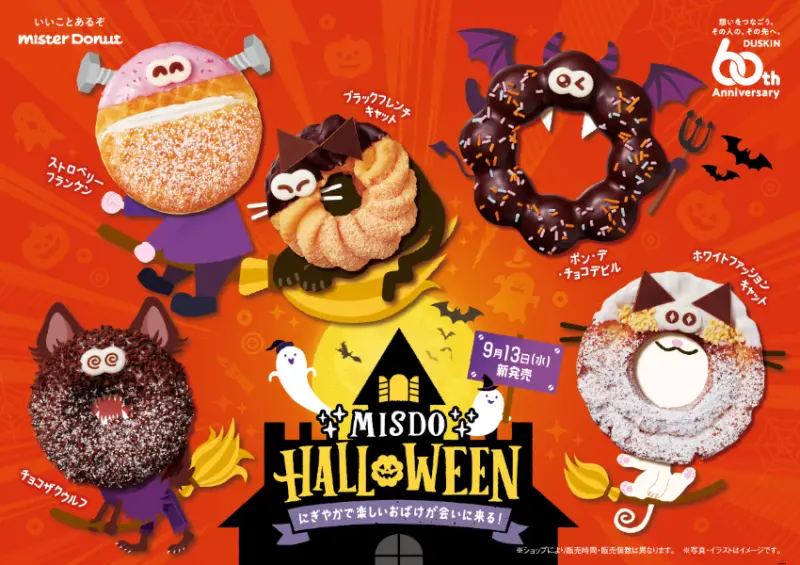 在台灣也能嚐到的Mister Donut已經提前預備好要來過萬聖節了!在日本的Mister Donut在9月推出「MISDO HALLOWEEN ~熱鬧歡樂的鬼怪來拜訪!~」,將廣受好評的甜甜圈們換上新裝,變身成為淘氣鬼怪,增添樂趣。