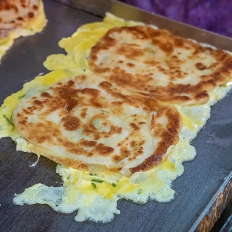 剛上桌蛋餅迷人香氣超誘人!酥皮煎的薄脆不油膩,喜歡淋上醬油吃起來是不同風味,再來一杯豆漿,早餐吃得好滿足!!!<全文介紹>