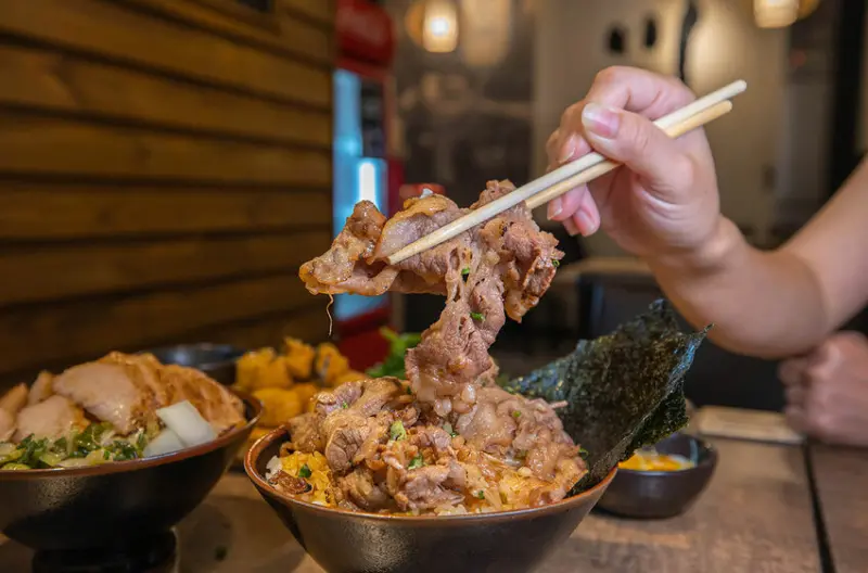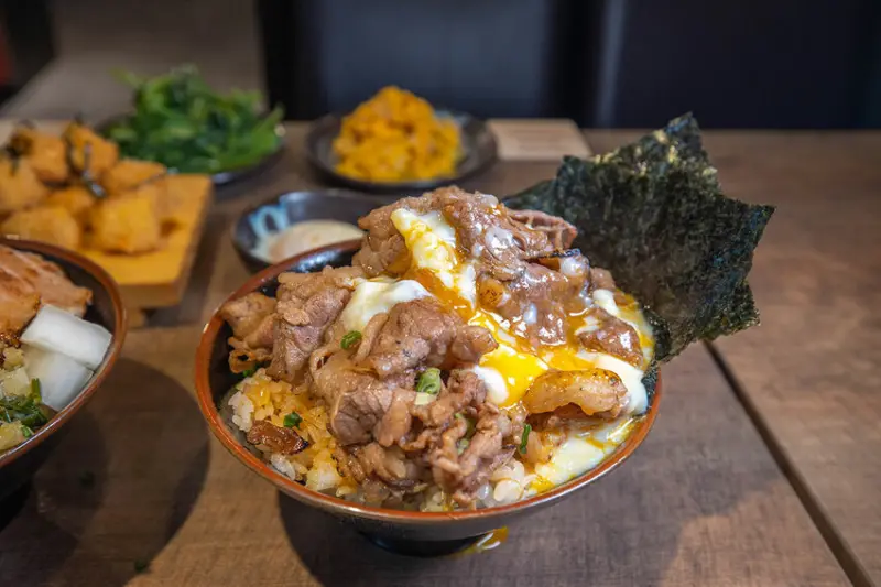 極盛牛丼飯嚴選牛肉以高溫直火燒烤後放在丼飯上,只能說他除了肉香四溢外份量更是驚人!而且口感跟軟嫩度極佳,口感帶著微微油脂感完全不會乾柴口感非常頂級美味~<全文介紹>