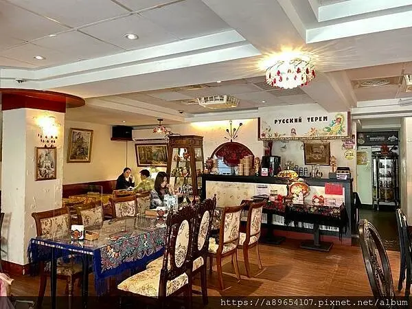 牆上還掛滿的各種藝術品,還有的是俄羅斯的風景畫,另外店內一走進來右手邊,就有販售各式各樣的俄羅斯商品…<全文介紹>