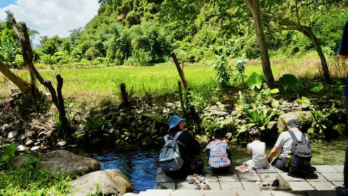 來這裡玩水的朋友都是將車子停在馬路上,再走進溪流之中,但也不用一分鐘就可以到達了。整個河面的水位不到膝蓋,幾乎能輕鬆地漫步在水裡。<全文介紹>